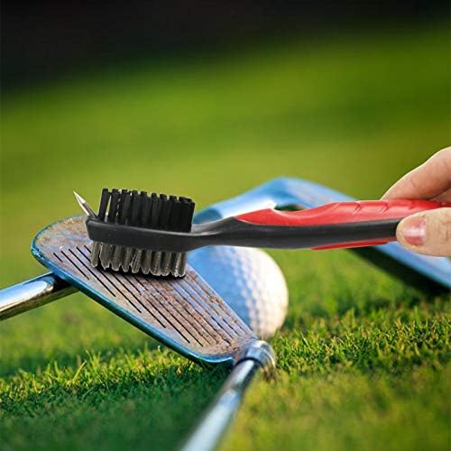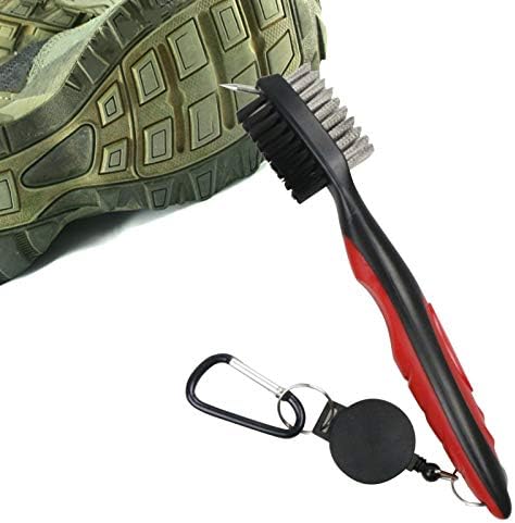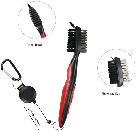 【Golf Club Groove Cleaner Brush】Double-sided nylon and steel wire brush head, can wipe any hard dirt on the iron/wood club without scratching.Sharp spike with protective cap for the stubborn dirt and grime in grooves, also can be used to clean your golf shoes. The retractable zip-line carabiner makes it easy to attach to your golf bag,Lightweight and portable