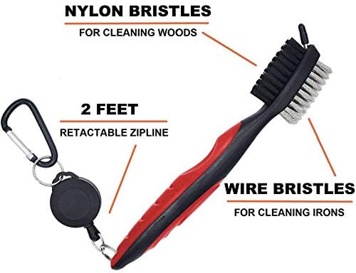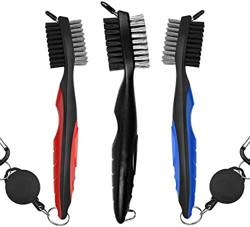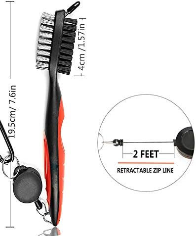Gzingen 3 Packs Golf Club Brush and Groove Cleaner with 2 Ft Retractable Zip-line and Aluminum Carabiner, Golf Cleaning Tool Spike Groove Cleaner Nylon and Metal Bristles, Easily Attaches to Golf Bag