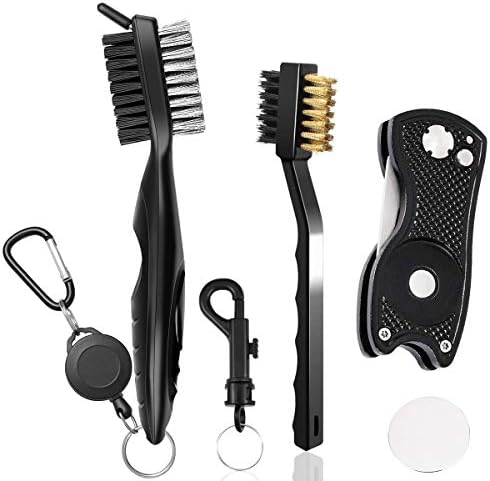 Gzingen Golf Accessories Set, Metal Golf Divot Repair Tool with Ball Marker, Club Groove Cleaner Cleaning Brush with Retractable Extension Cord, and Golf Brush Groove Cleaner (3 in 1 Pack)
