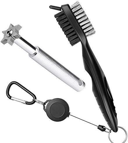 RETRACTABLE GOLF CLUB BRUSH: Wire bristles for quick and efficient cleaning of irons while on the fairway, Sharp pick for stubborn dirt and grime in grooves (Comes with plastic cover).