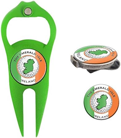 Hat Trick Openers 6-in-1 Golf Divot Tool & Hat Clip Set with Ireland Logo, Kelly Green