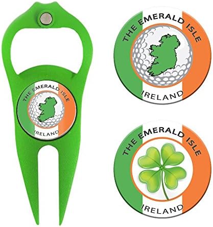 Hat Trick Openers 6-in-1 Golf Divot Tool & Poker Chip Marker Set with Ireland Logo, Kelly Green