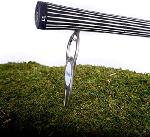 The hat Trick 6-in-1 golf divot repair tool is a unique and multi-functional golf accessory. It incorporates a divot fixer, magnetic ball marker, bottle opener with a magnetic cap catcher which prevents the bottle cap from falling to the ground, a cigar holder, club rest, and can tab opener. The hat trick(r) 6-in-1 divot tool is a golf green friendly divot tool and comes in several different finishes. It is a must have for any golfer and can be used on the course or the 19th hole. This fun and quality golf accessory makes a Great gift for any golfer and is truly a keep sake. Hat Trick (R) golf accessories are all manufactured and assembled in the USA and is a veteran owed business. This unique gift set includes two ceramic Poker chips which are used for ball markers.