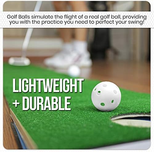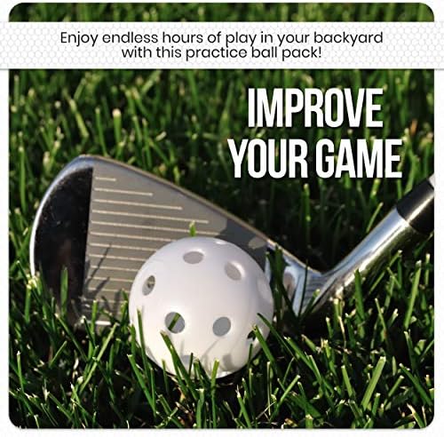 ? 26 HOLES, ACCURATE SPIN AND DISTANCE: In order to mimic the flight of a true golf ball, these plastic golf balls have 26 holes in them. That means, you can improve your game by practicing anywhere, not just the golf course! You can now practice golf at home, in your backyard, indoors, outdoors, and even at the golf driving range with the help of these golf balls.