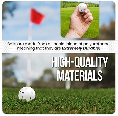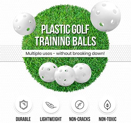 ? LIGHTWEIGHT + DURABLE: These practice golf balls are made with lightweight and non-toxic plastic. Unlike many other cheaper designs, these golf balls are made in a way that SIGNIFICANTLY reduces splitting, cracks and damages, and since they are made with the best quality materials, these practice golf balls can be used multiple times without breaking down.