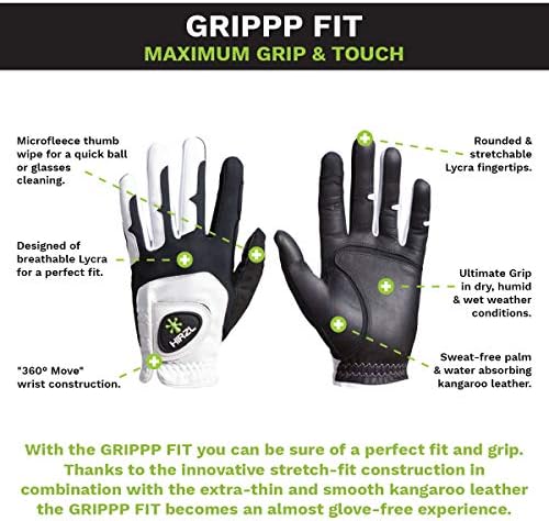 HIRZL GRIPPP FIT Golf Gloves – All Weather Mens Golf Glove (White/Black) | Kangaroo Leather & Lycra | Ultimate Grip in Wet or Dry Conditions | Breathable, Stretch Fit, Sweat Absorbent, Water Repellent