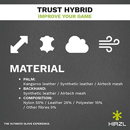 The TRUST HYBRID is the perfect combination of kangaroo and synthetic leather. It combines the advantages of various high-performance materials – kangaroo leather with the HIRZL GRIPPP technology, white digital synthetic leather, and breathable Airtech mesh.