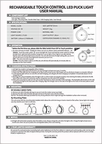 Easy to Operate – (TOUCH/OFF/10MIN): TOUCH: ① short tap the center of LED light to turn on or turn off ; ②long tap the center of LED light, the light will be brighten or darken gradually. OFF: turn off the light. 10MIN: the same function as the TOUCH, when you do not want to turn off the light manually,you can turn it on and it will go off after 10 minutes, keep lighting up,ensuring that you can see the road before arriving your house.