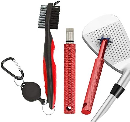 HMROAD Golf Clean Tool Set,Retractable Golf Club Brush and Groove Sharpener for All Golf Irons,Red