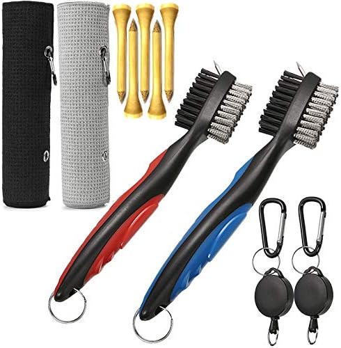 HOOMBOOM Golf Accessories Set Golf Towel, 2-Pack Golf Club Brush and Club Groove Cleaner 2 Ft Retractable Zip-line and Aluminum Carabiner Cleaning Tools