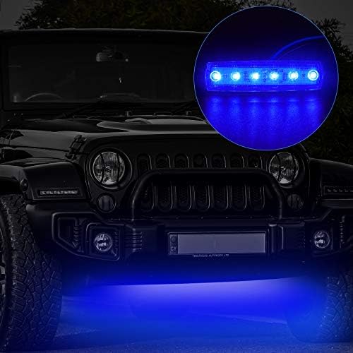 Hortsun Led Underglow Kit, Includes 8 Pieces Led Car Rock Lights and 4 Pieces Led Strip Lights with 32 Ft Extension Cable Wire Cord for Cars, Golf Cart (Blue)