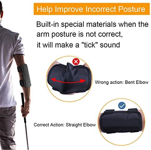 Golf Elbow Correction :Through Tik-tok sound to warn their incorrect posture to golfers, and then correct by self to make arm in straigh, therefore it can gradually form effective and desired hitting; Fit all golfers or golf instruction, especially works great for beginners.