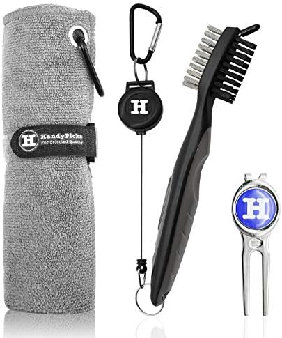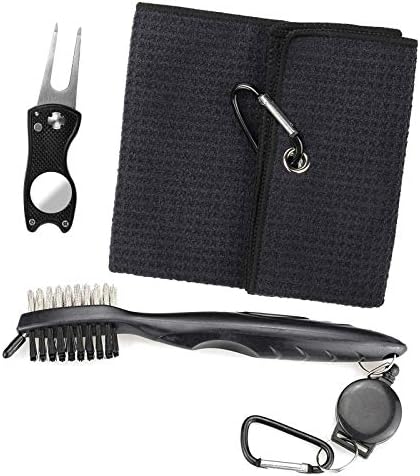 Hutigertech Golf Accessories Set 9 in 1 with Golf Towel | Golf Club Brush | Foldable Divot Repair Tool | Golf Ball Marker and Golf Tees | Complete Golf Gift for Men Women