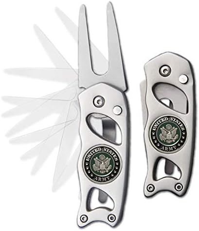 Indiana Metal Craft US Army Seal Stainless Steel Construction Switchblade Golf Divot Repair Tool with 0.75 inches Die Struck Magnetic Nickel Silver Enamel Ball Marker