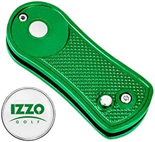 Izzo Golf Metal Foldable Golf Divot Repair Tool with Removable Magnetic Golf Ball Marker