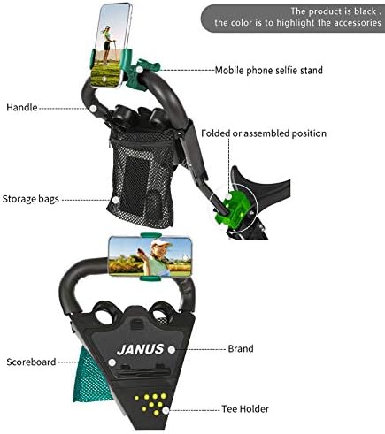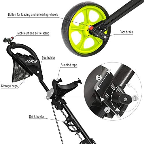 JANUS Golf Push Cart, Golf cart for Golf Clubs, Golf Pull cart for Golf Bag, Golf Push carts 3 Wheel Folding, Golf Accessories for Men Women/Kids Practice and Game