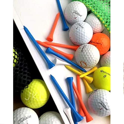 JKL Wooden Golf Tees Colored Ball Tee Golf Accessories Free Golf Ball Markers (Pack of 100 Blue/Orange/Yellow/White Colors Wood Tee)