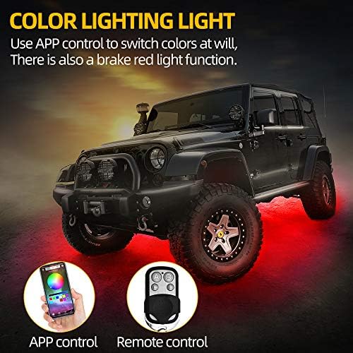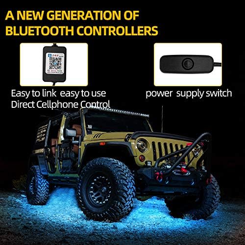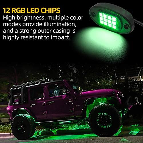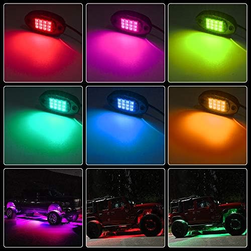 JoaSinc Rock Lights RGB LED Underglow Light Bluetooth Phone App/Remote Control Timing Flashing Music Multicolor Neon LED Light IP67 Waterproof for Cars Off Road SUV ATV Vehicles (4 Pods)