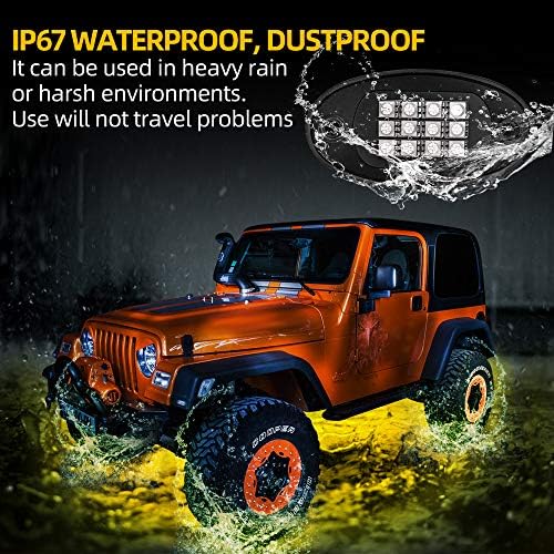 Brightness: Provide 16 Million Different Colors, Cool Lighting for Car Decoration. Each pod light shoots up to 150° angle Ultra-Wide light.Colors Functions (Blinking, Flashing, Brightness.etc).