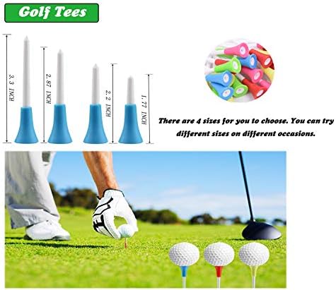 PROFESSIONAL GOLF TEES: There are 4 sizes for you to choose, you can try different sizes on different occasions. Size L*2: 3.3 inch, Size M*2: 2.87 inch, Size S*2: 2.2 inch, Size XS*2: 1.77 inch.