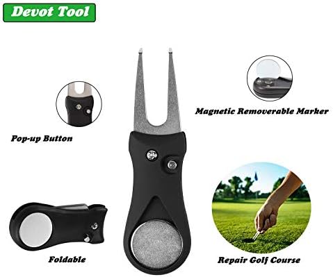 FOLDABLE DIVOT TOOL: Avoid catch on your pocket or finger. Pop down button for easy unfold of the fixer. Full Metal with magnetic ball marker that attaches to the divot tool, easy push down to pop and reseat. Solid grip and feel.