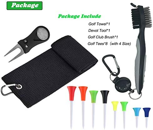 VALUE COMBO PACKS: 1* Golf club brush with Groove Cleaner, 1* Golf Towel, 1*Foldable Divot Tool, 8* Golf tees. A few money to get these accessories all, saving money & times. Great golf accessories gift kit for golf lovers.