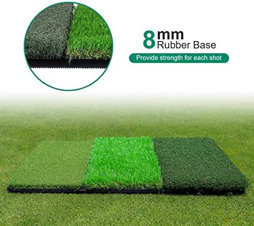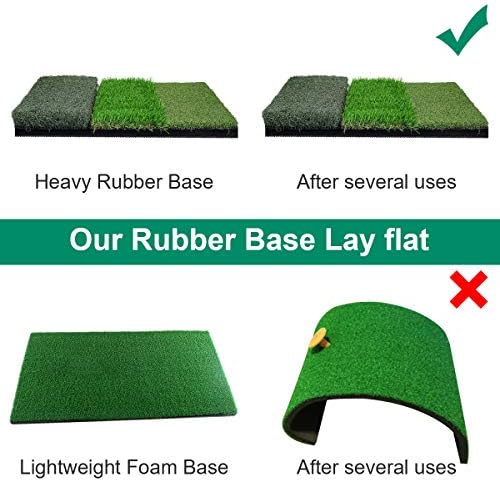 ▶【HIGH-QUALITY GRASS & DURABLE HEAVY RUBBER BASE】Thicken 8mm Rubber Base backing makes the mat durable than others, heavy enough to stay put while swinging. You’ll have the confidence to hit thousands of balls off the mat without it moving after each shot. Rubberized EVA foam backing feels like real turf keeps your mat from slipping. The realistic feeling fiber turfs and the THICKER rubber bottom ensure increased longevity