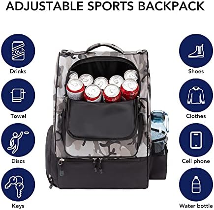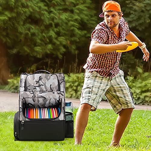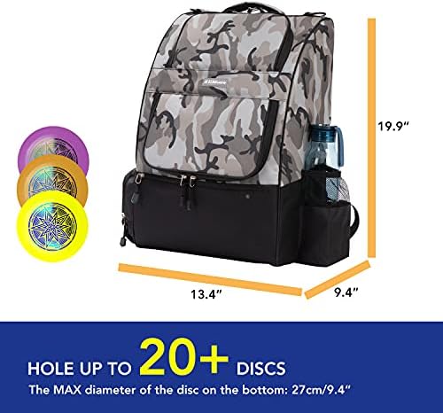 KGMCARE Disc Golf Backpack Camouflage Disc Golf Bag with 20+ Disc Capacity Carry Golf Bag for Disc Golf Starter Set Two Side Storage Pockets Disc Golf Backpack Bag Discs Not Included