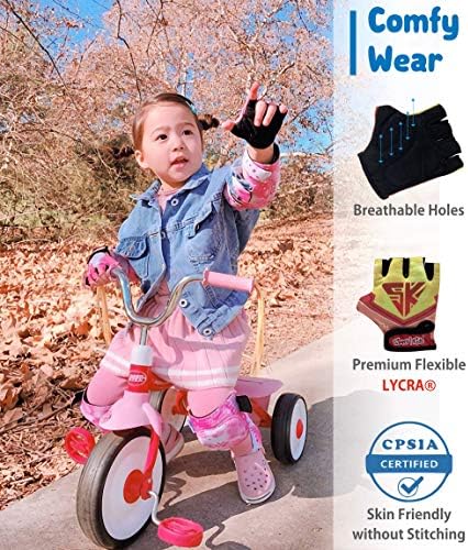 “Thank you Simply Kids for keeping my daughter protected and safe with your amazing gear! I noticed how flexible they were immediately! These are built last with their unique design making them washable and scrape proof! My favorite part about this set is it also comes with the cutest little bike gloves (also palm padded for protection)!”