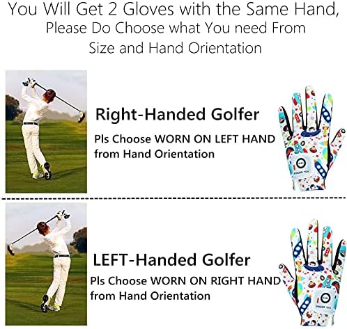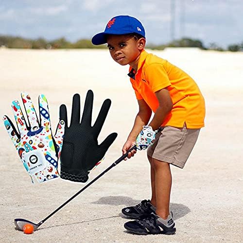 Kids Golf Gloves Boys Girls Left Right Hand Breathable Value 2 Pack Gift Set for Junior Youth Toddler White Black Green