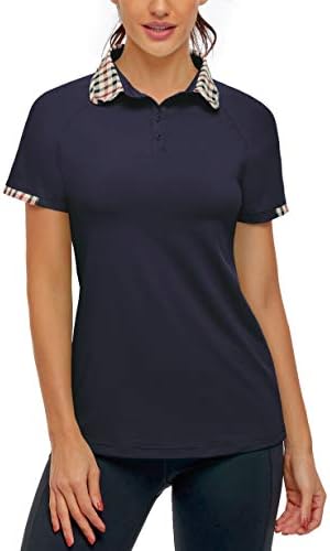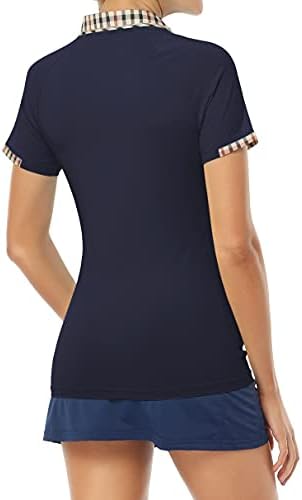 KORALHY UPF50+ Polo Shirt for Women Stretchy Moisture Wicking Plaid Collar Shirts Outdoor Sports Shirts
