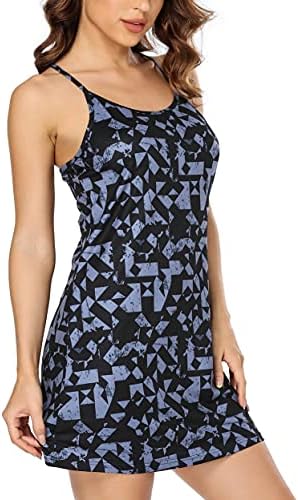 This Exercise dress is designed with shoulder straps and is very comfortable and breathable to wear.Lightweight and breathable material has built-in biker short liner that features pockets for necessities like Keys or tennis ball and Phone, without worrying about losing anything.Slimmer fitted cut curves your streamline and added comfort, perfect for both sports activities and daily life. Ideal for causal, leisure, sleeping, golf, tennis, volleyball, baseball as well as cheerleading, dancing, running, hiking.