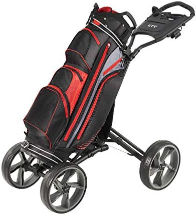 BALL BEARING WHEELS AND DURABLE DESIGN: The golf cart comes with strong aluminum frame which shows outstanding sturdiness and stability. With large 10.5″ front and two 11.5″ rear maintenance-free wheels with ball bearings provide a smooth ride and perfect traction on all kinds of terrain.