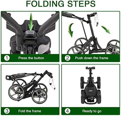 KVV 4 Wheel Foldable/Collapsible Golf Push Cart-with Super Strong & Lightweight Aluminum Frame-One Step to Open and Close