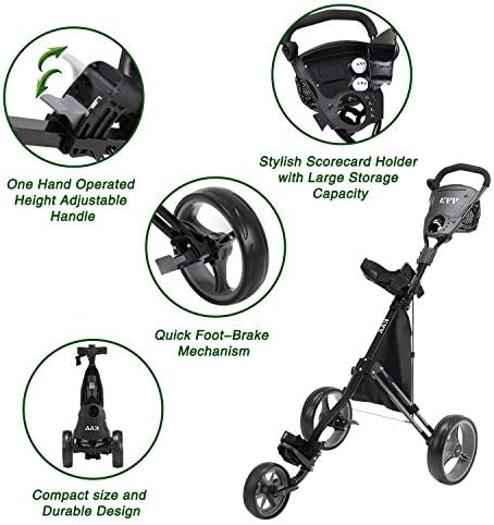 KVV Foldable Lightweight 3 Wheel Golf Cart with Stylish Scorecard Holder, Storage Bag-Easy to Open and Close