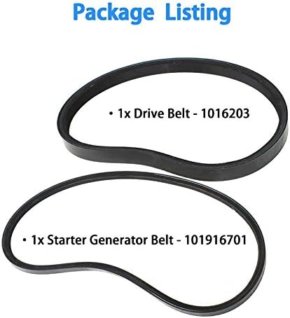 Package Included: 1x Drive Belt – 1016203, 1x Starter Generator Belt – 101916701.