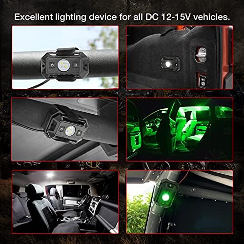 EXCELLENT BRIGHTNESS – Feature 4pcs top-grade & high efficiency CREE LEDs and clear, scratch resistant PC lens, the LED Courtesy Light emits super bright cool white light and green light to greatly improved visibility, when you are outdoors in the forest or hunting, green light is more suitable than white light, and the flood light can provide a 180-degree illumination range, which better to meet your lighting needs.