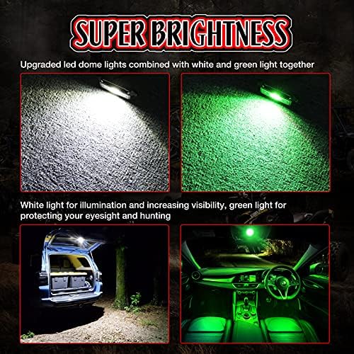 -The LED Courtesy Light emits super bright cool white light and green light to greatly improved visibility, when you are outdoors in the forest or hunting, green light is more suitable than white light.