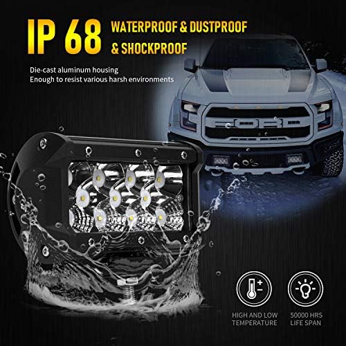 PERFECT LIGHT BEAM – The latest design reflector that focuses the LED driving fog lights into a tight 30° spot beam and cast 120° wide flood beam, the perfect combo beam provides long distance projection and wide range illumination. 99% light transmittance of the light bar to maximal reduce the light loss, perfect for off-road driving at night.