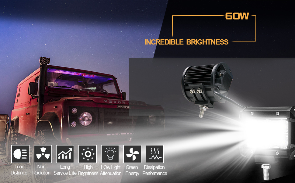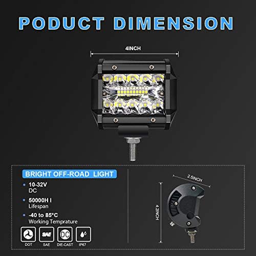 【Efficient Heat Dissipation】 This led work light have effective cooling system with special designed thermal fins prolong the lifespan for the LED pods light above 50,000 hours.