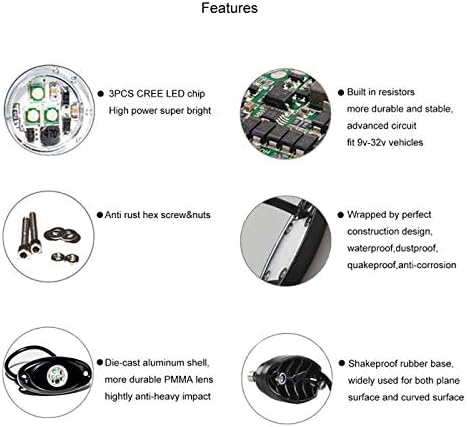 LED Rock Lights could Installed on Your ATV, UTV, Motorcycle, Truck, Car, Boat, Golf Cart Underbody Underglow Light Kit. Use Them Under Your Vehicle Or As Interior Light, Off-Roading Light, Reverse Light, Dome Light, Neon Light LED Replacement, etc.