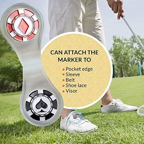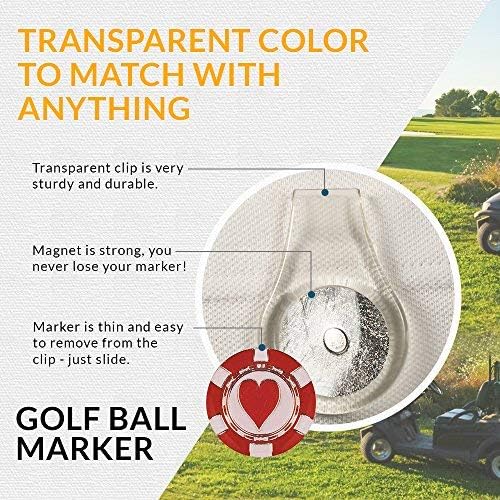 lifetoenjoy Golf Ball Marker Clip – with Two Golf Markers – Attach to Your Pocket Edge, Belt, Clothes – Strong, Easy to Use Magnetic Mechanism – Transparent Color to Match with Anything! Great Gift!