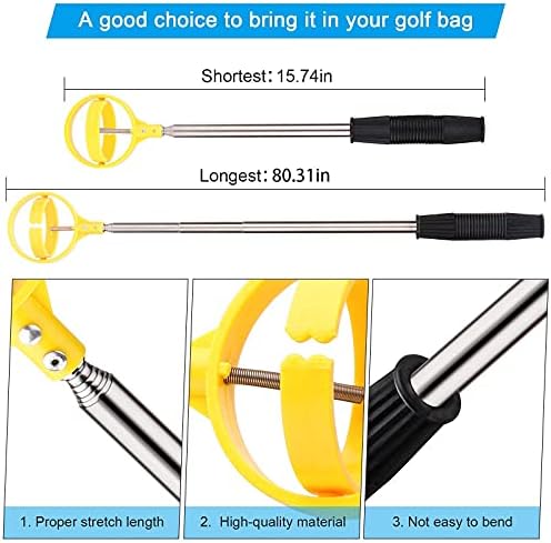 ⛳【Telescopic Golf Ball Retriever】The stainless steel telescopic golf finder can extend up to 6.56 feet, which can help you catch the golf ball without bending down. It is very flexible and not easy to bend, and it will not rust even if it is immersed in water