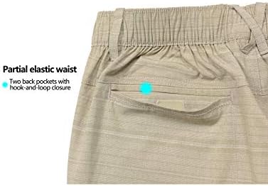 Partial elastic waist for increased mobility and comfort. Store essentials with ease in four pockets, including two hand pockets and two back pockets with hook-and-loop closure.