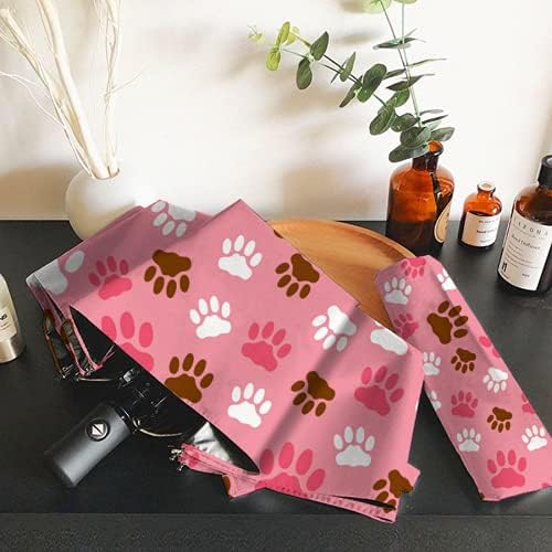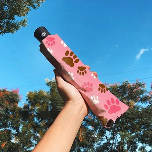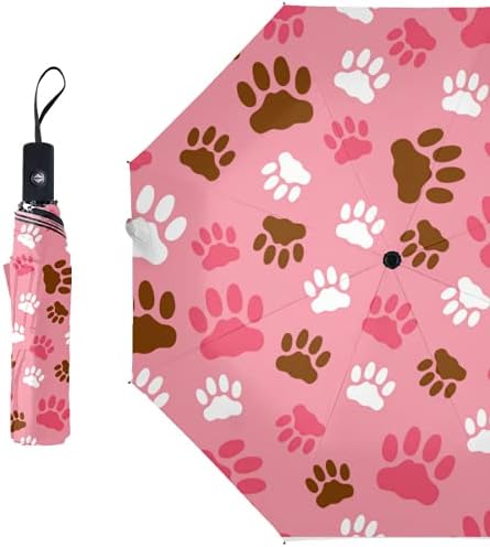 LoveKunYu Auto Open Close Umbrella Cute Cat Paw Prints On Blush Pink Automatic Compact Travel Sun Rain Golf Windproof Folding Umbrella Portable Auto Open Close Parasol for Women Kids Men Girls