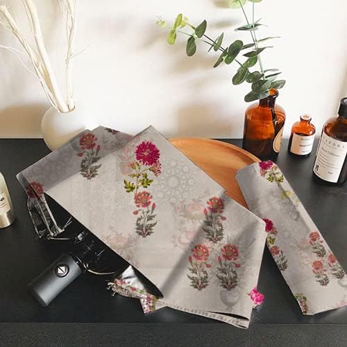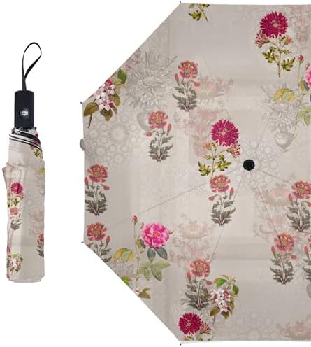 LoveKunYu Compact Umbrella Vintage Multi Colored Fish Bone Fossil Auto Open Close Travel Sun Golf Folding Umbrellas Windproof Lightweight for Women Men Kids Girls Parasol with Black Anti-Uv Coating