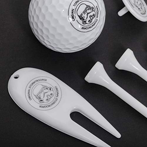 The Original Stormtrooper Golf Gift Set contains everything a golfer could need for their perfect round. Includes 3 x tees, 1 x golf ball, 1 x ball marker and 1 x divot tool.