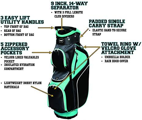 Majek Ladies Teal Black Golf Bag 9 inch 14-Way Friendly Separator Top