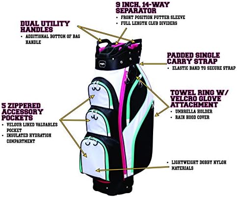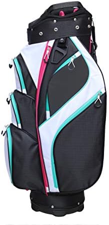 Majek Premium Ladies Black White Teal Pink Golf Bag 9.5 inch 14-Way Friendly Separator Top with Putter Sleeve