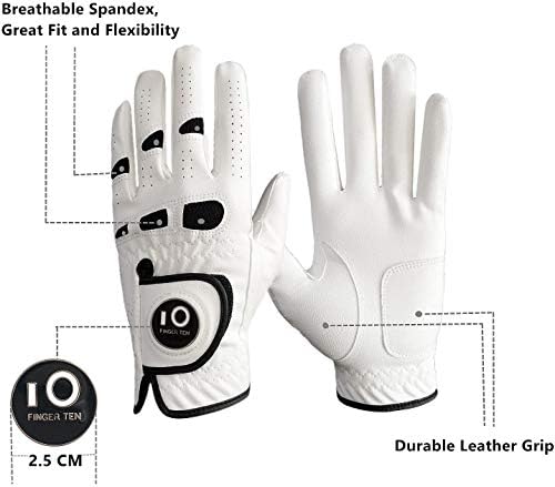 Men’s Golf Glove Left Hand Right with Ball Marker Value 2 Pack, Weathersof Grip Soft Comfortable, Fit Size Small Medium ML Large XL, by Finger Ten